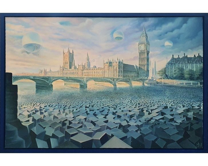 Adrianna, owner of the Heritage Gallery, has an experienced eye for outstanding artwork and awarded Mark Brawn for his intriguing surrealist painting “Welcome to Britain” in oil.