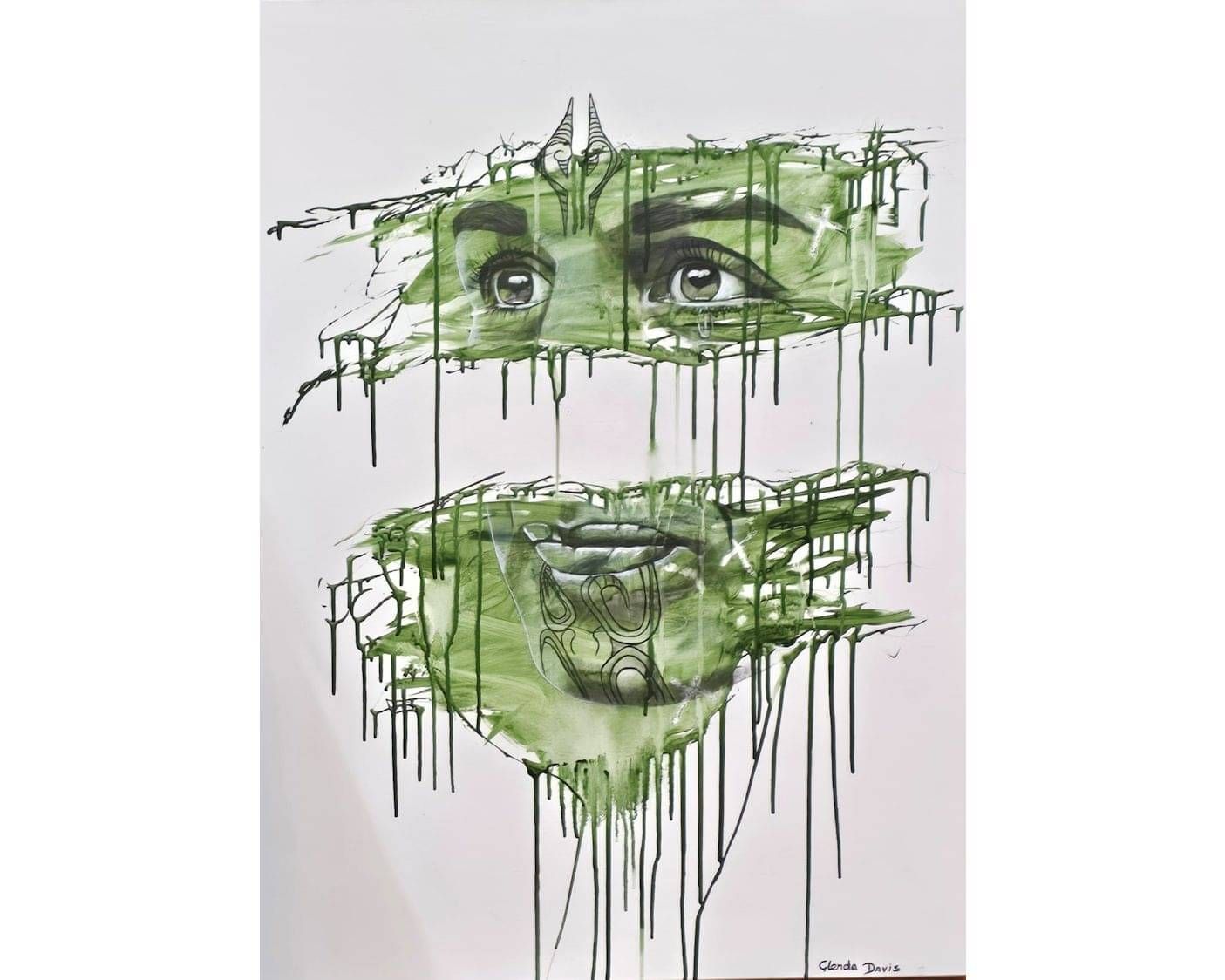 Inspirit Gallery owner, Jenny, with over 18 years’ in the business, selected Glenda Davis’ arresting acrylic masterpiece, “Tears for the Ancestors and the Distance Between Them” as a winner .